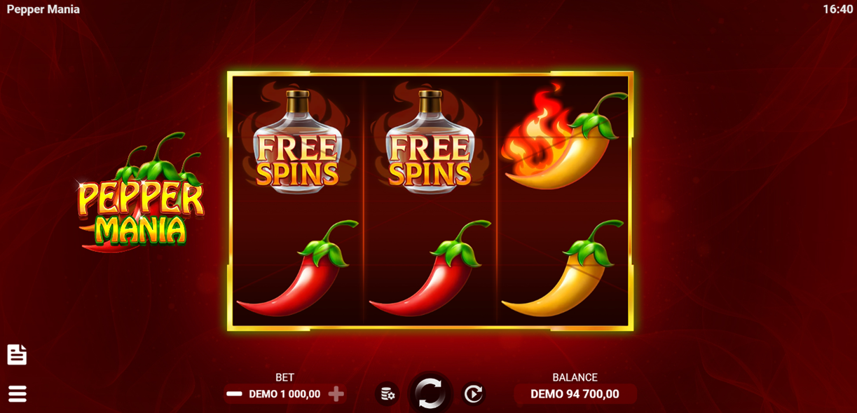 - Play Mode - Pepper Mania is a 5x3 reel video slot game with 5 fixed paylines with Wild, Scatter, Empty Symbols, Pepper on Fire, and Free Spins with a Free Spin symbol.