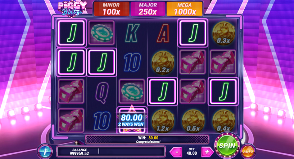 Slide onto the stage of Piggy Blitz to discover the Mega prizes that await you in this upbeat slot game.