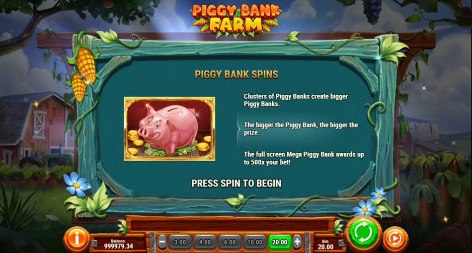 - Minimum and maximum bet - Piggy Bank Farm has a minimum bet of 0.10 and 50.00 as a maximum bet.