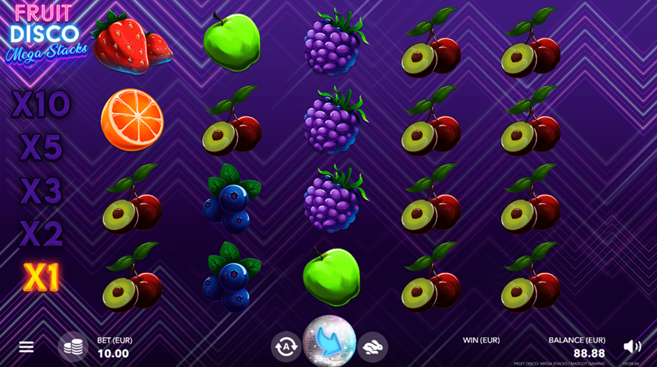 - Fruit Disco graphics – Fruit Disco: Mega Stacks is packed with dynamic Fruit Disco graphics and lively disco music to set the scene, with incredible fruit dancing on the reels.