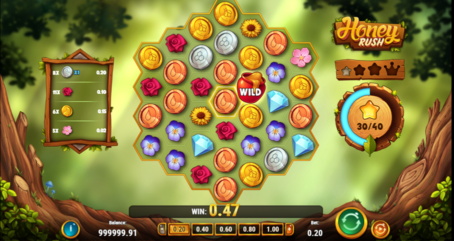 - Minimum and maximum bet – Honey Rush has a minimum bet of 0.20 and 10.00 as a maximum bet.