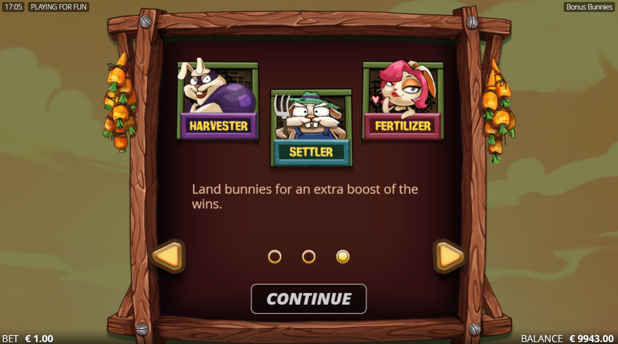 You will be enchanted and delighted with wins that the Bonus Bunnies dig up from their burrows in this Festive Easter slot game from NoLimitCity. These Bonus Bunnies will tickle your sensations with the fresh veggies that they grow into wins for you. Will you land the Settler, the Harvester, or the Fertilizer to multiply your wins in the bonus game? Start spinning now to discover your winning Easter streak. Gruff!
