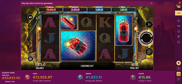 - 95.93% RTP (Return to Player) - YThe RTP on Max Miner is 95.93%, and with such a groovy RTP, you can expect Big Wins from this slot game.