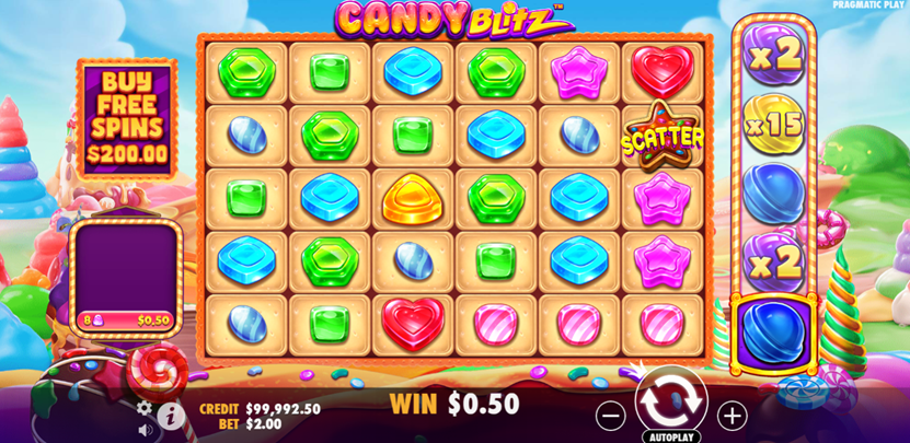 You are in for delicious candy land fun in this sweet-filled slot game from Pragmatic Play that will fill your pockets with more than sweets. Candy Blitz has multipliers up to x10 000 that use the cascade pay mechanics to enhance your winning combinations. The reel multipliers and tumble features make gameplay heart-racing, as you win the best multipliers up to x10 000 of the base bet.