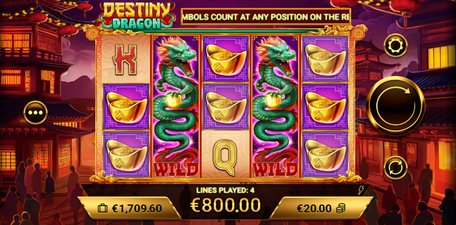 When you play this treasure-filled video slot game, Destiny Dragon, you will be immersed in the oriental dragon’s treasures with wins up to x2000 of your base bet, as you seek out the dragon’s treasures when you pick a game with multipliers up to x50.