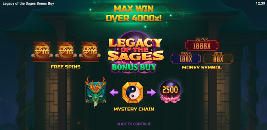 Legacy of the Sages Bonus Buy has super jackpot options that pay up to x1888 of your bet and up to 18 free spins in a round. SlotVibe Casino hopes you enjoy playing this oriental-themed slot game, Legacy of the Sages Bonus Buy by Evoplay, as much as we enjoyed reviewing it.