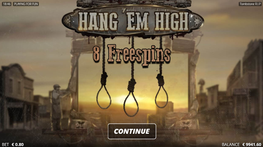- Hang ‘em High Free Spins – 3 Hang ‘em High Scatter symbols trigger 8 Hang ‘em High Free Spins. Multipliers increase in the Bonus round by all Wild symbol types.