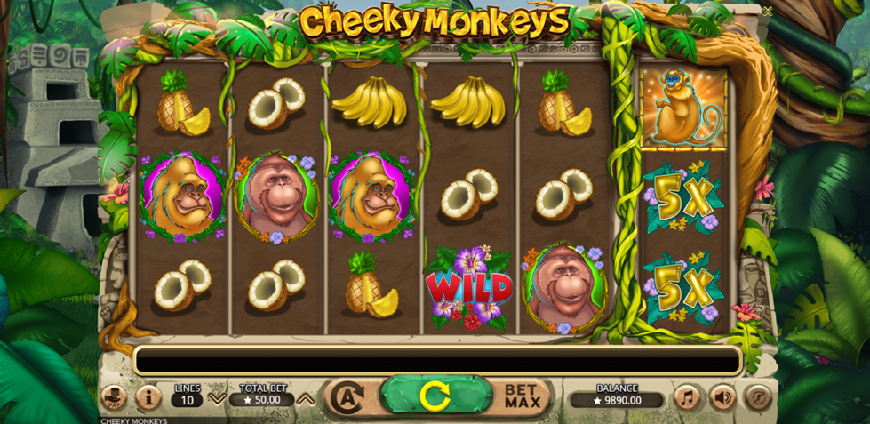 When you are in the jungle collecting tropical fruits, you will discover Cheeky Monkeys, a fun-filled slot game from Yggdrasil. This community of monkeys have generous Free Spins and 2 Interactive Symbols that award multipliers up to x50 and tons of Free Spins. Cheeky Monkeys has a Bonus Reel and special awards.