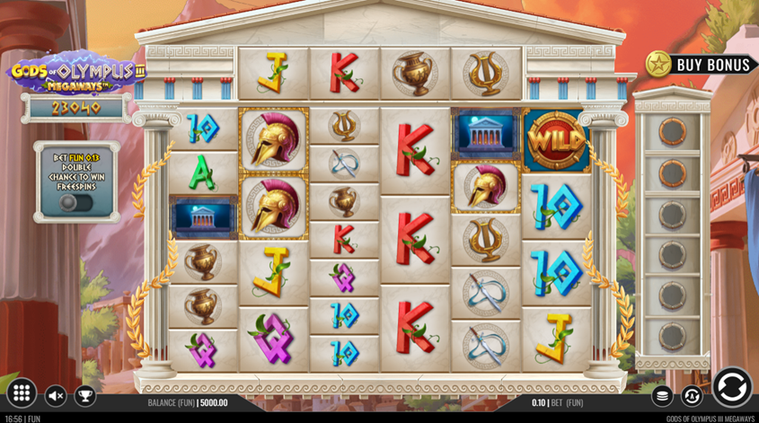 Gods of Olympus III Megaways Main Features : Free Spins, Symbol Transformation, Gods of Olympus, Ante Bet, Horizontal Reel, and Buy Bonus.