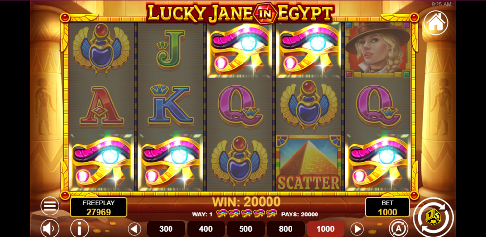- Play Mode - Lucky Jane in Egypt is a 5x3 reel video slot game with 243 paylines offering Free Spins and Coin multipliers.